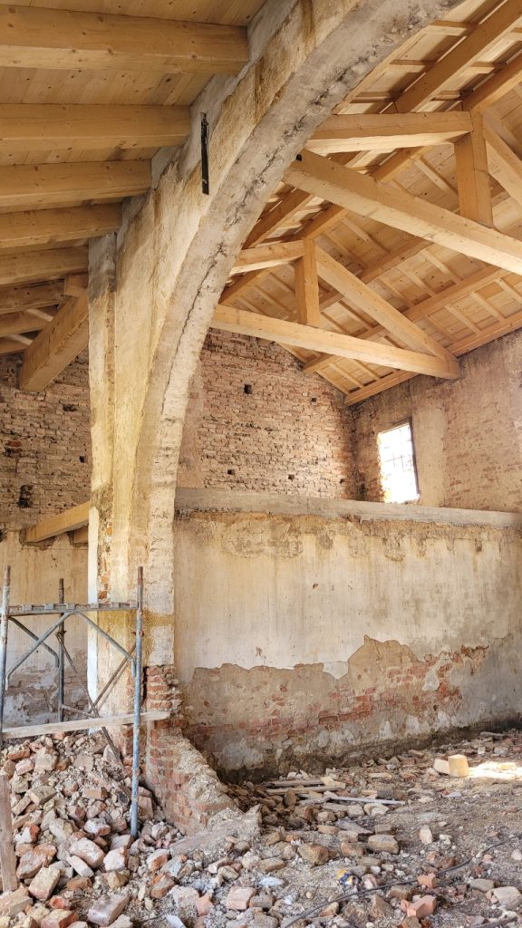 Die Restaurierung, geplant vom Büro Faccio Engineering S.r.l. in Padua und durchgeführt unter der Bauleitung von Architekt Mattia Rizzi, ist Teil einer umfassenderen Strategie zum Schutz und zur Aufwertung des gesamten Komplexes und des historischen Parks. Die heutige landschaftliche Gestaltung wird Giuseppe Jappelli (nach 1824–1830) zugeschrieben, auf Initiative von Graf Andrea Cittadella Vigodarzere (1804–1870). Die Maßnahme zielte auf die Erhaltung der baulichen und stilistischen Merkmale des Gebäudes ab, mit besonderem Augenmerk auf die traditionelle Technik und Geometrie des Daches, das vollständig rekonstruiert wurde, um auch die Erdbebensicherheit zu verbessern.