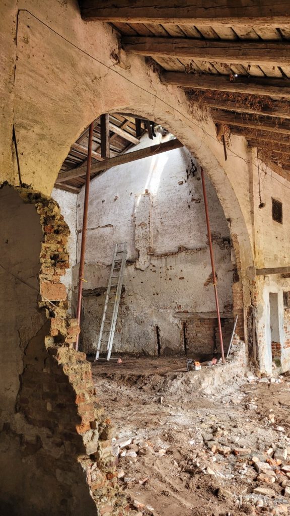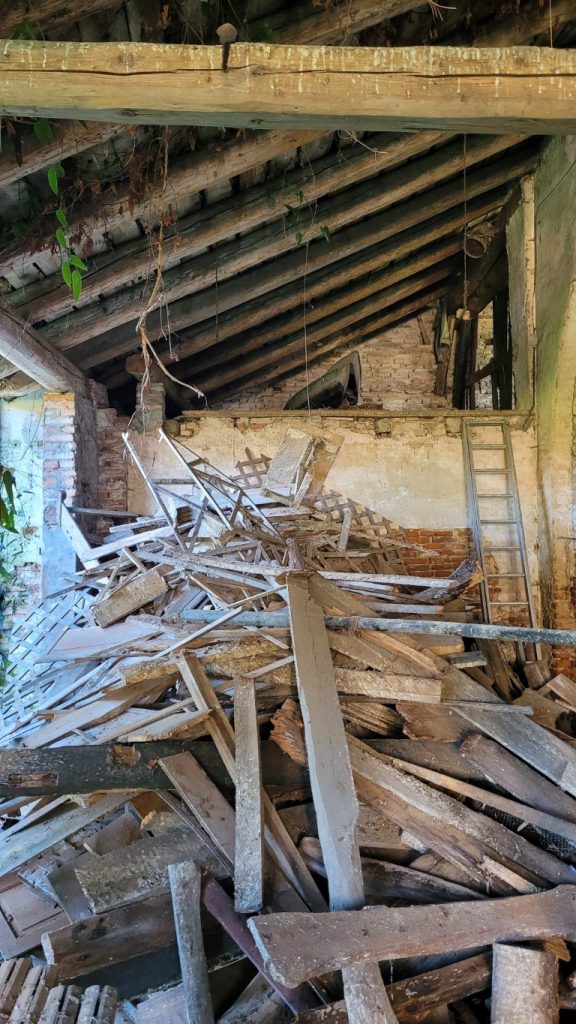 Der „Canevon“ weist die typische Gestaltung der venetischen Bauernarchitektur auf, mit einer Vorhalle zur Unterbringung landwirtschaftlicher Geräte und einem hölzernen Dachstuhl. Laut historischen Katasterunterlagen erfuhr das Gebäude im Laufe der Zeit funktionale Veränderungen entsprechend den Tätigkeiten des Gutes, behielt jedoch die erkennbaren Merkmale der ursprünglichen Architektur bei. Zum Zeitpunkt des Eingriffs befand es sich jedoch in starkem Verfall und ohne definierte Nutzung.
